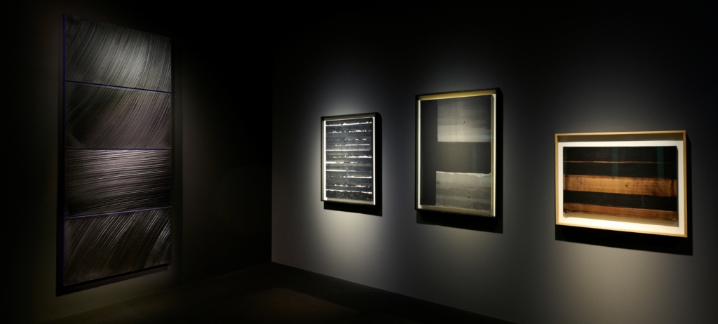 Das eigene Erleben von Lichtreflexionen auf der pastos aufgetragenen schwarzen Farbe in Abhängigkeit von der eigenen Bewegung, die Dynamik von Licht und Dunkelheit, die weiten Raum für Imagination und Gedankenspiele lässt, steht im Fokus dieser konzentrierten Präsentation. Das Bild entstand vor dem Hintergrund seiner bedeutenden Fenster für die romanische Abteikirche im südfranzösischen Conques und wird künftig in der Sammlung spätmittelalterlicher christlicher Kunst der Kunsthalle im ZKM gezeigt werden.