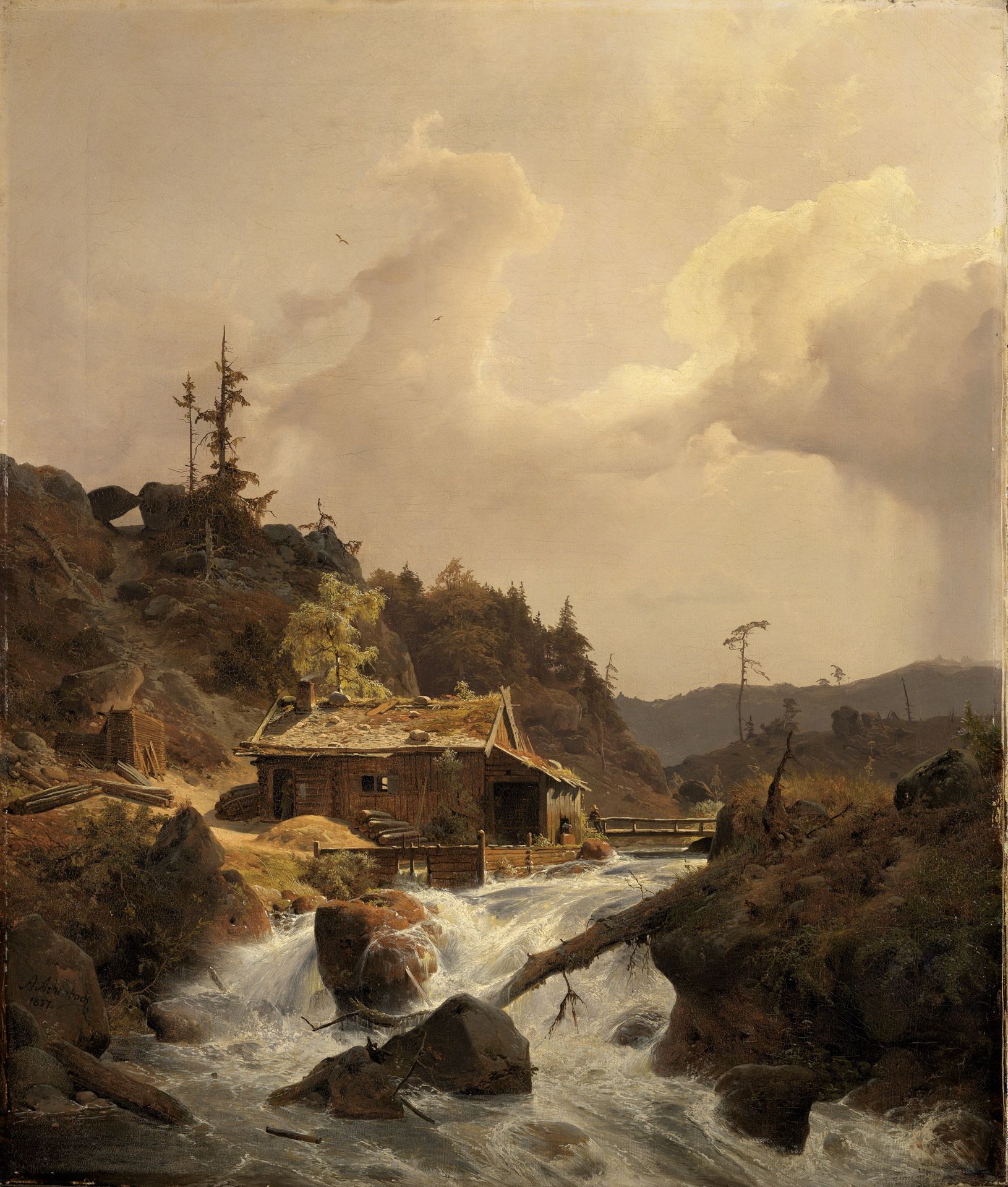 | Titel | Norwegische Landschaft mit Sägemühle |