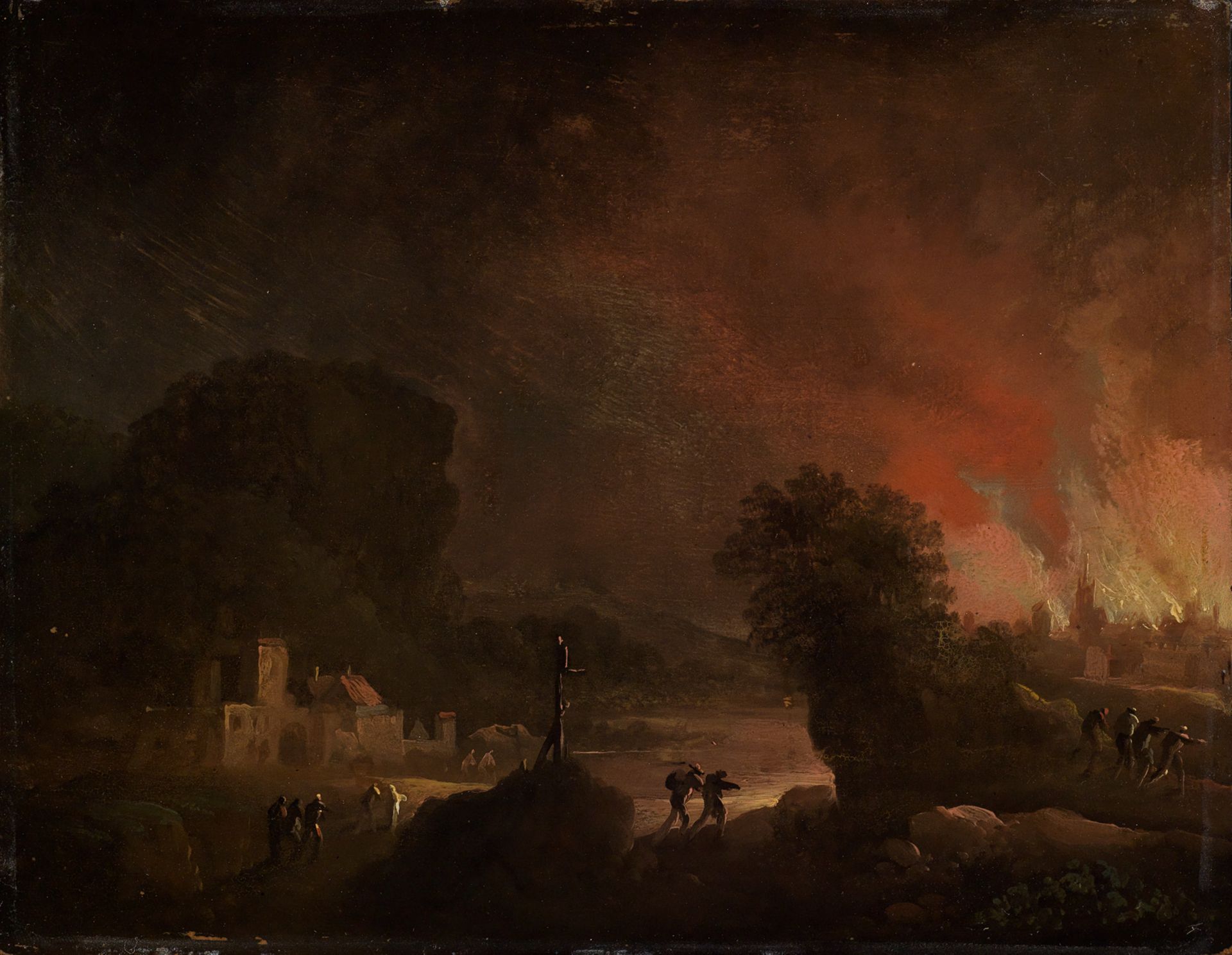 Titel Nächtliche Landschaft mit brennender Stadt