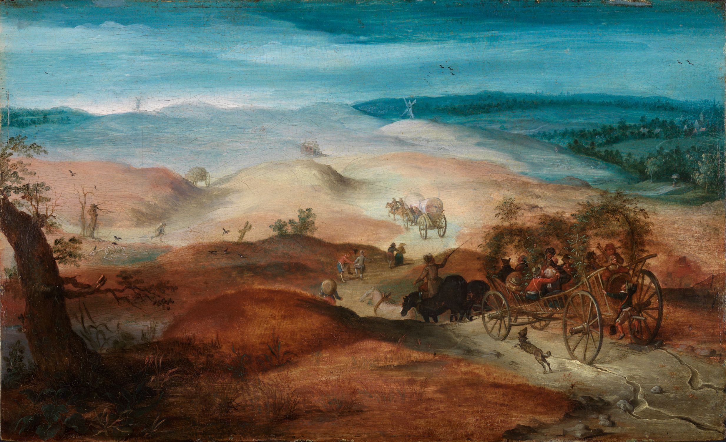 | Titel | Weite Hügellandschaft mit Bauernwagen |