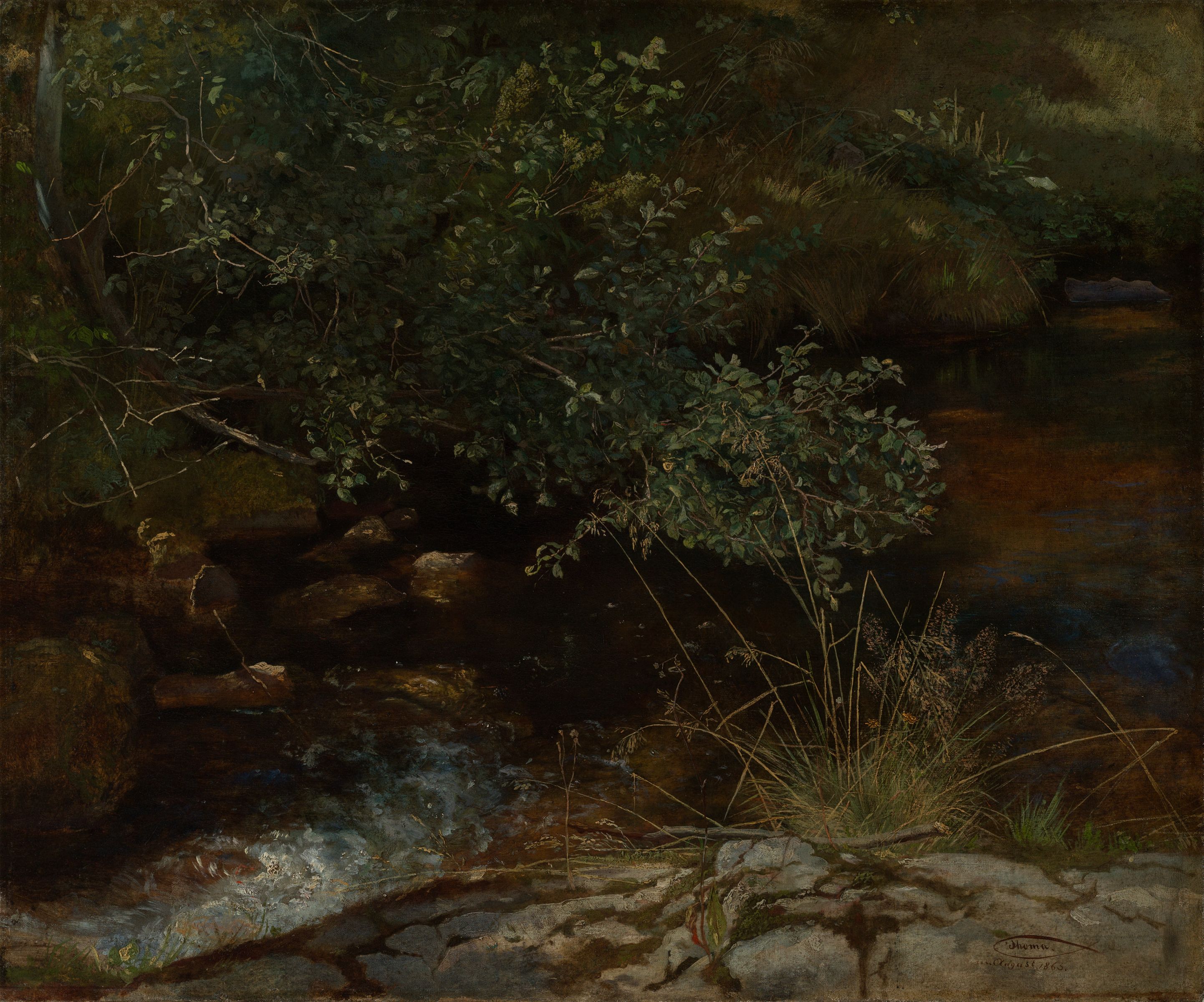 Hans Thoma - Bachufer mit Gebüsch und Gräsern