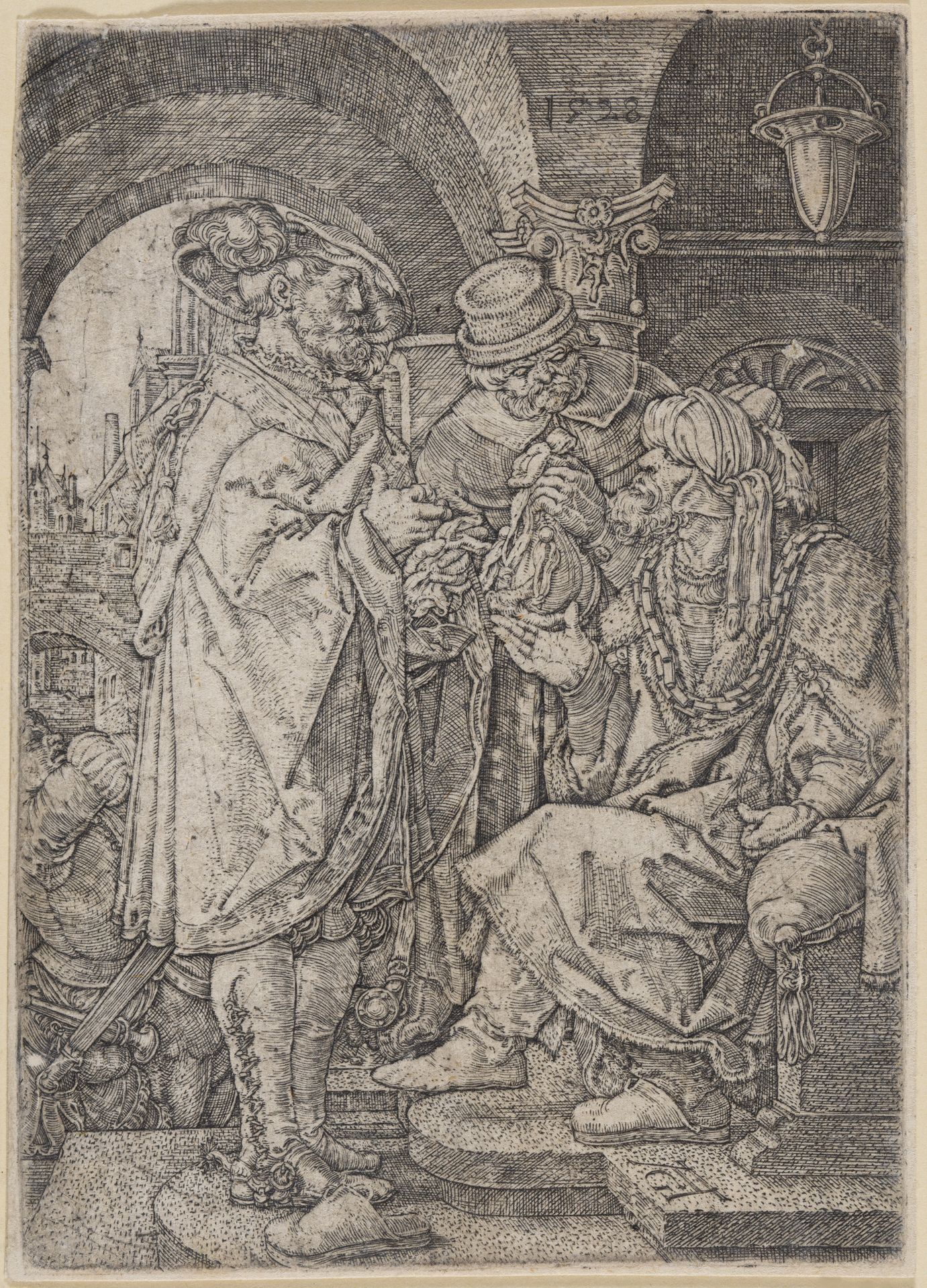 Heinrich Aldegrever - Joseph lässt seinen Brüdern Getreide verkaufen (Geschichte Josephs)