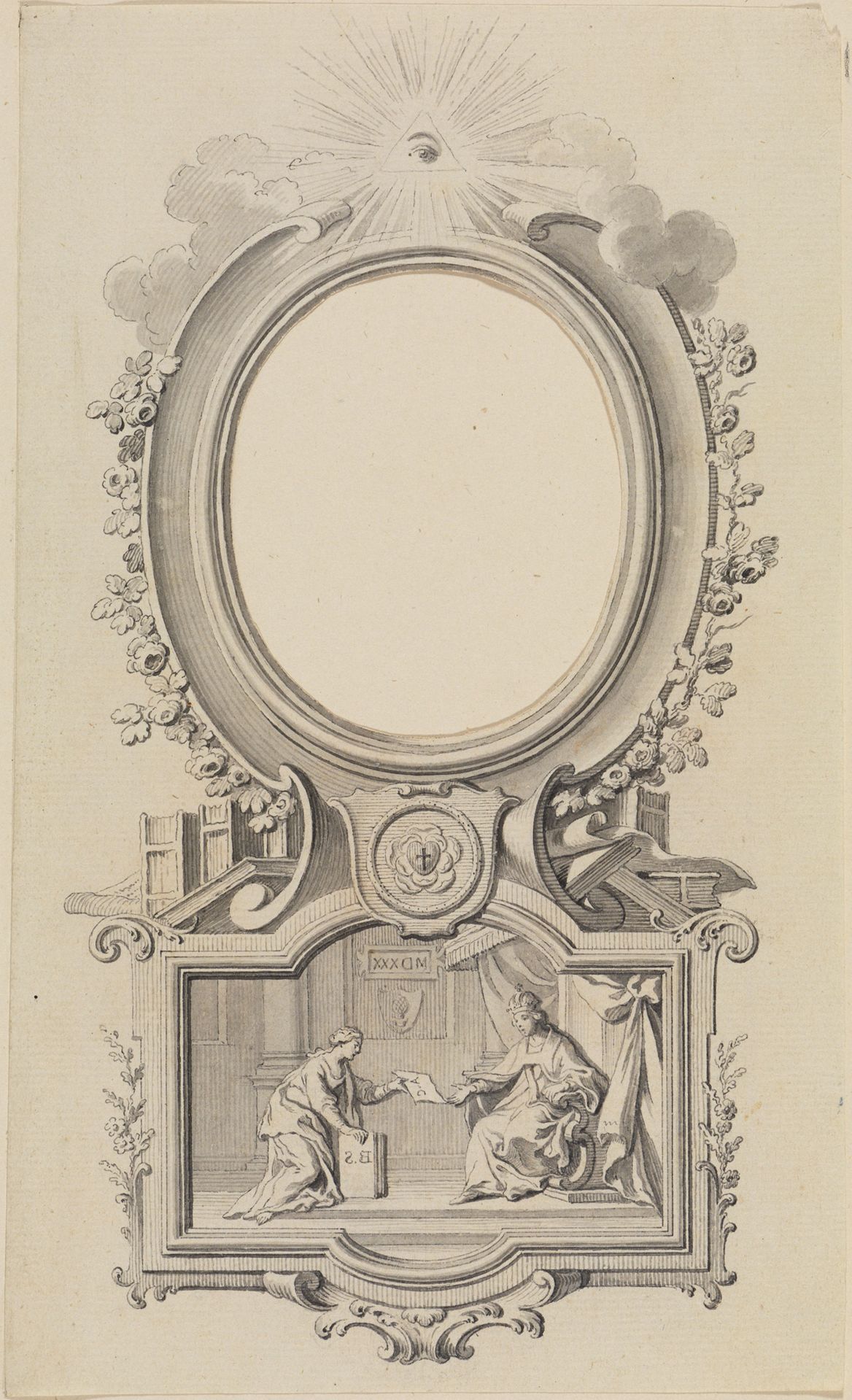 Entwurf für eine gestochene Porträt-Kartusche