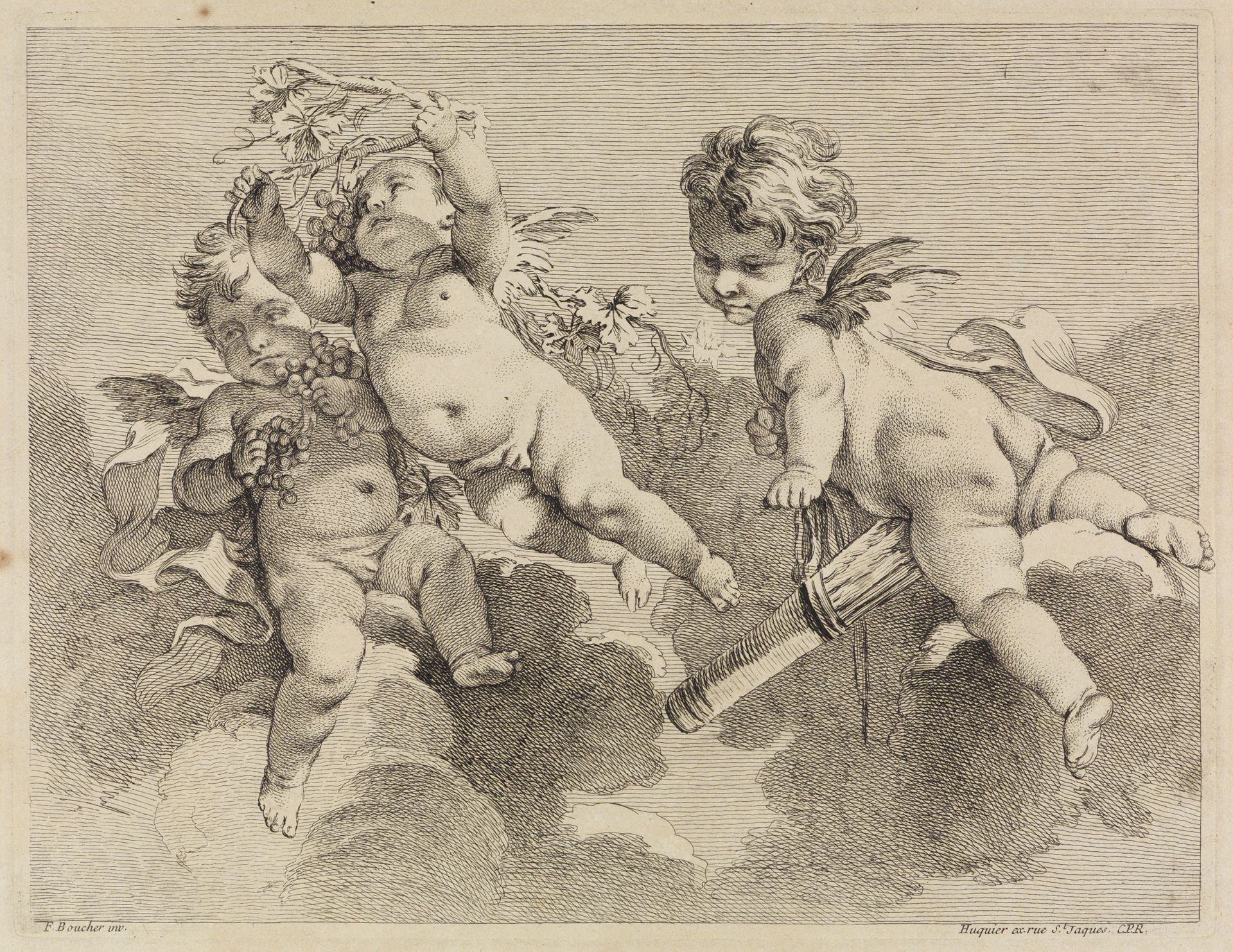 | Titel | Drei Putten mit Köcher und Trauben |